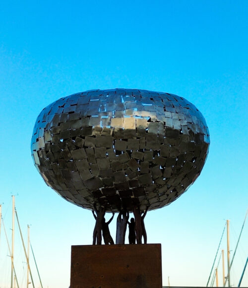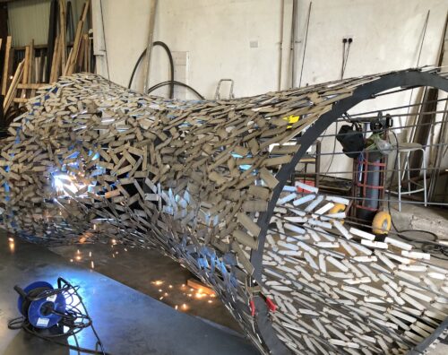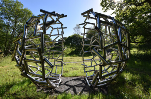 Fused Click on images to expand Phase One Phase one Orb sculptures Cairn sculpture – 316 stainless steel Interphase Conical Cone Sea Urchin Conical, rusted steel Fused figure sculptures